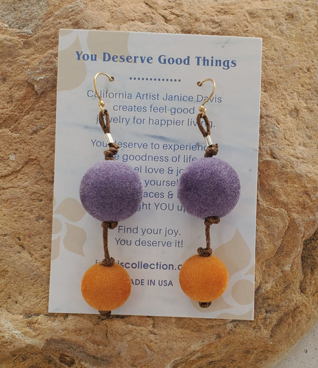 - yellow-orange, purple pom-poms