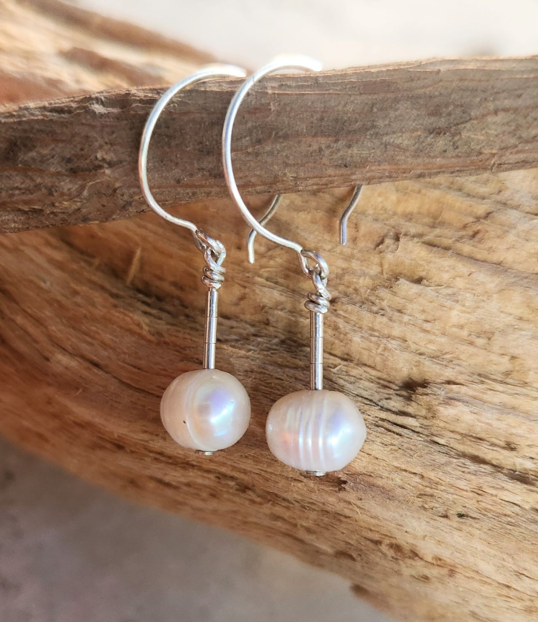 Delicate and effortlessly chic, the Lunar Drop Hoops are a modern twist on timeless elegance. Featuring mini silver hoops paired with luminous white pearl stick drops, these earrings capture the serene beauty of moonlit nights.