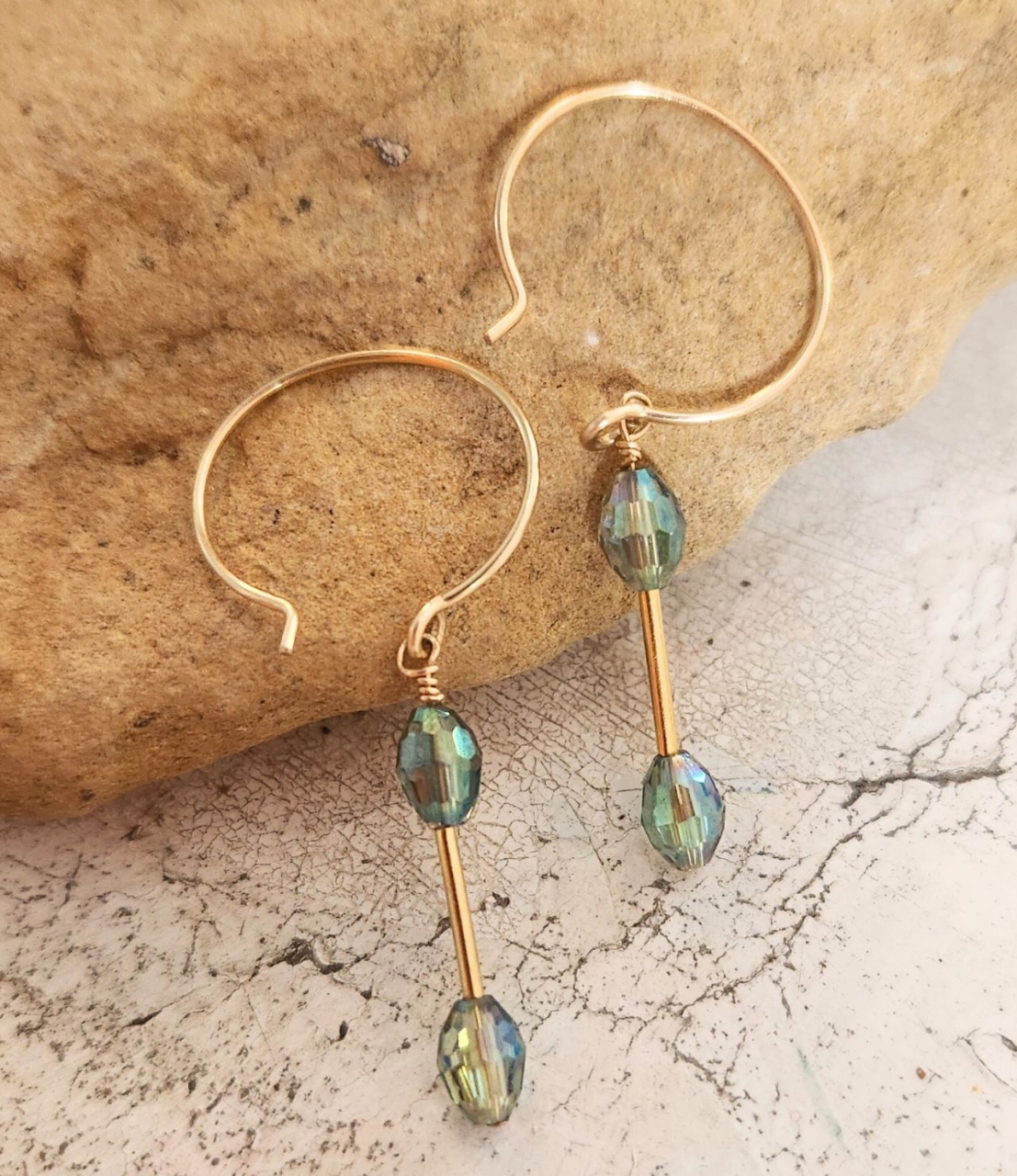 Cast a spell of enchantment! These gold mini hoops feature dazzling crystal drops that shimmer with a mesmerizing blend of green, yellow, and blue hues. Accented by a sleek gold stick, these earrings radiate a playful yet sophisticated charm.