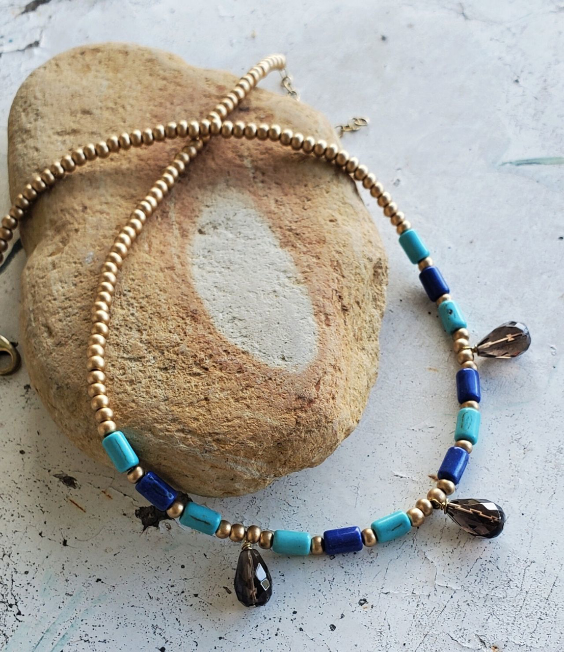 A smokey quartz tribal necklace was designed with stones that aid in ovarian cancer. Smokey quartz is considered to be a root chakra. It is believed this powerful crystal facilitates the regeneration of the cells. This beautiful stone brings about deep healing energies that can help heal ovarian, abdomen, and all forms of cancer such as lumps and cysts.