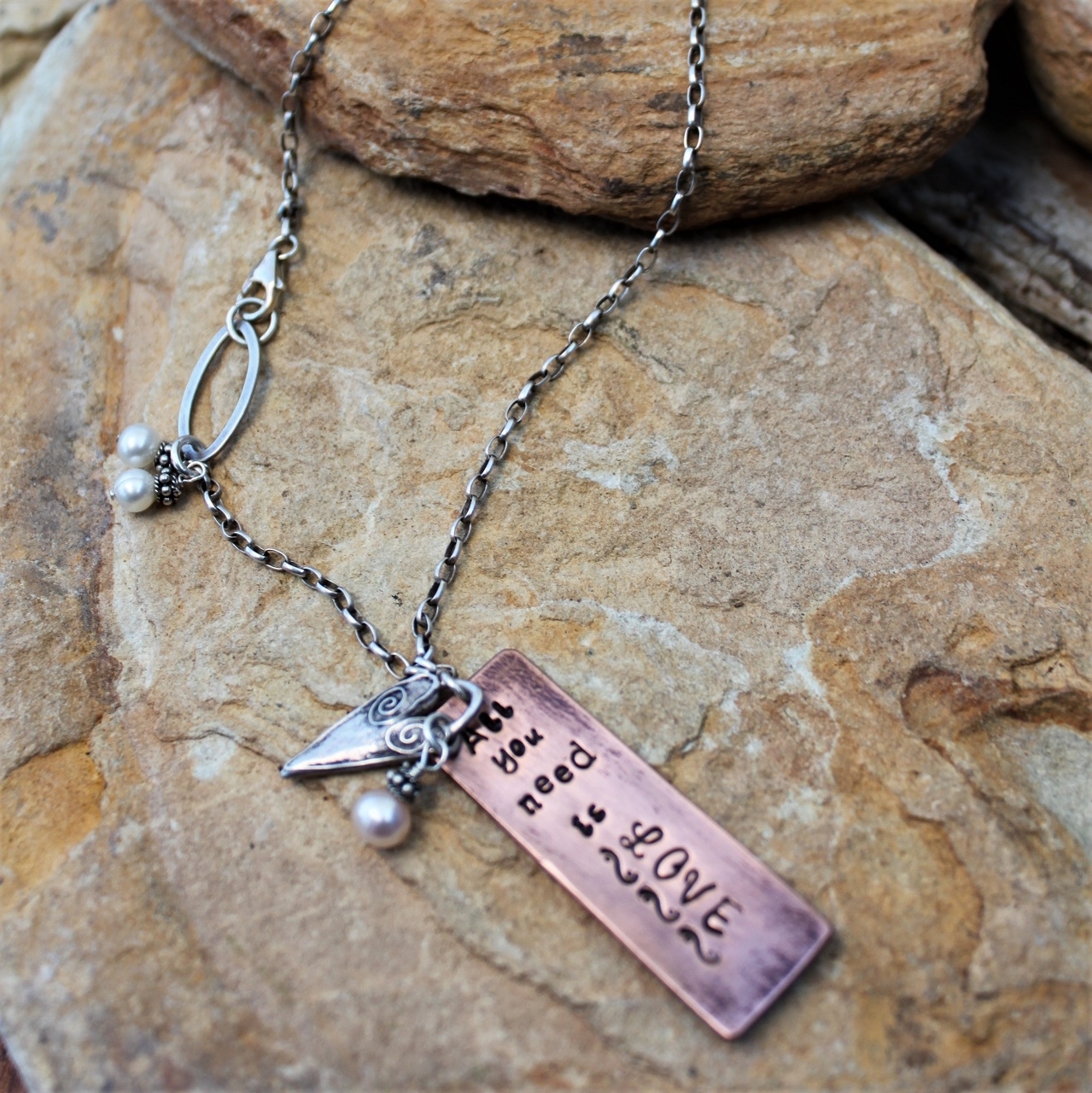 All You Need is Love Necklace - Sterling, Copper, Pearls