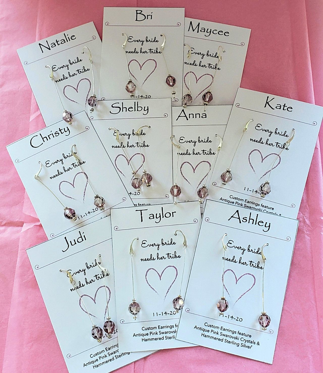 Custom designed Swarovski crystal bridesmaids earrings to go with the prettiest mauve-ish pink dresses.