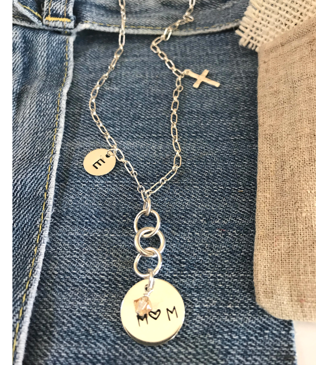 Future babies will be represented with more circle, sterling inital charms next to the first one. And additional Swarovski crystal to be clustered on center Mom charm.
