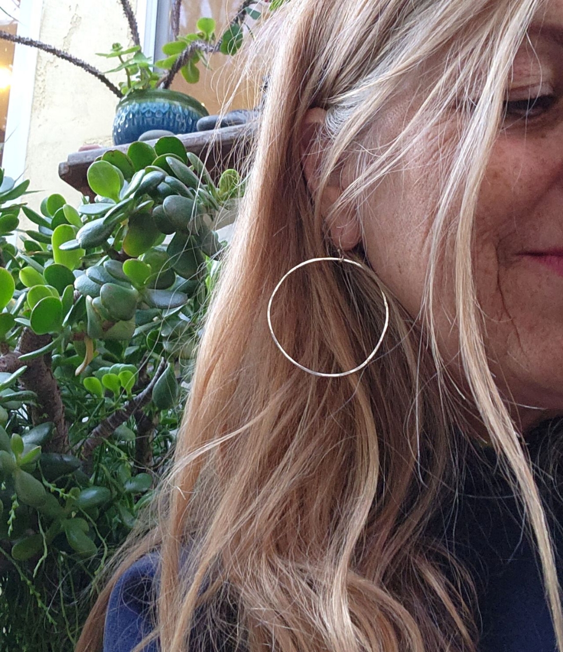 How about a pair of shiny, hammered flat, 2" silver hoop earrings for everyday?! These pretties are a 2" in diameter and make a lovely hoop statement on your lobes!!