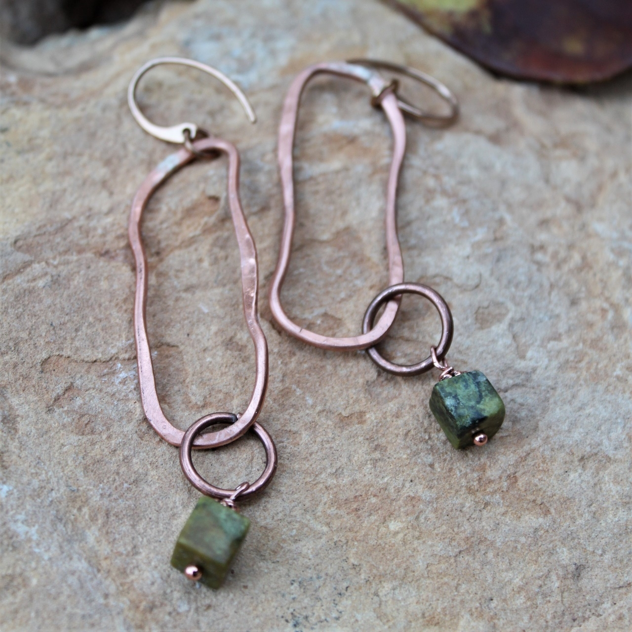 These handcrafted organic oval jade earrings were designed for a store that carried my jewelry. I am happy to design more of these. Send me a message at info@jdaviscollection.com.